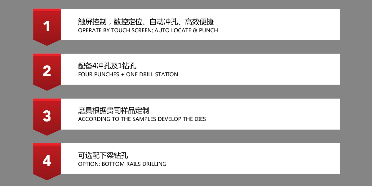 本机可将多种上轨同时进行冲孔,精度高,节省人工,提高效率